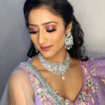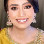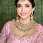 Bridal makeup enhances natural beauty with a flawless, long-lasting finish. It features radiant skin, defined eyes, and elegant lips, perfectly complementing the bride’s outfit for a timeless, camera-ready wedding look.